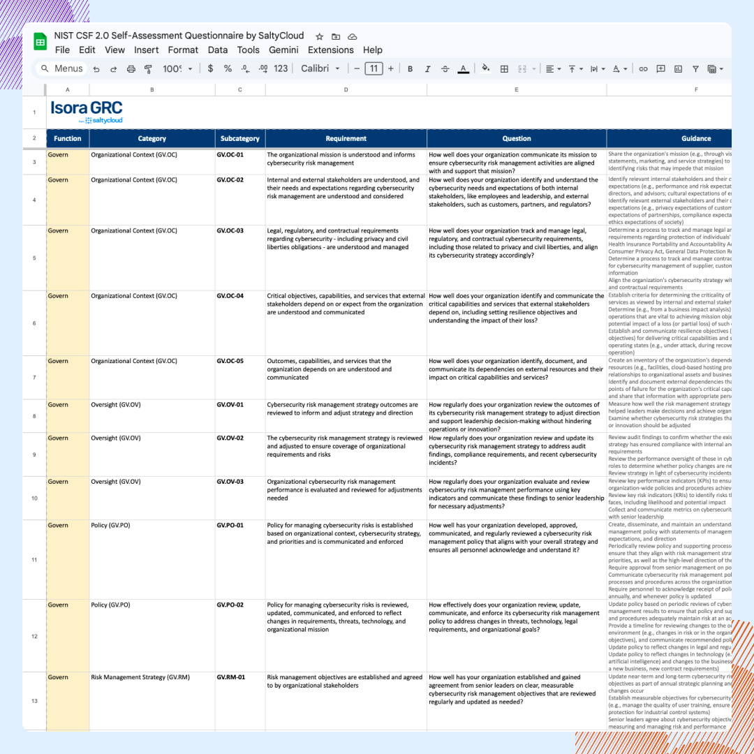 Assess your organization against all 106 NIST CSF 2.0 Subcategories with plain-language questions, implementation tiers, and evidence fields — designed to be distributed across business units and teams — for a complete picture of what you’ve done, what’s in progress, and what’s missing.